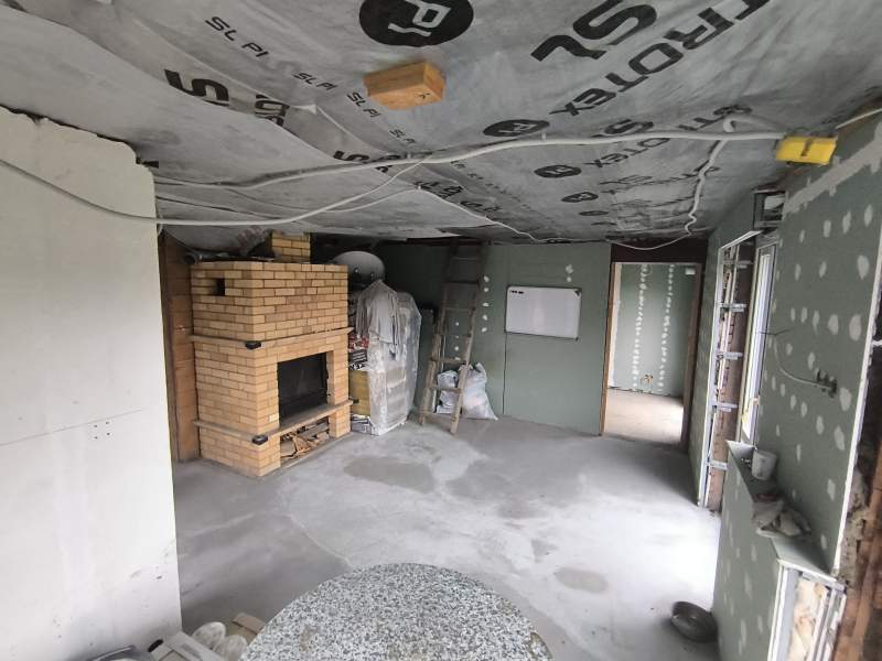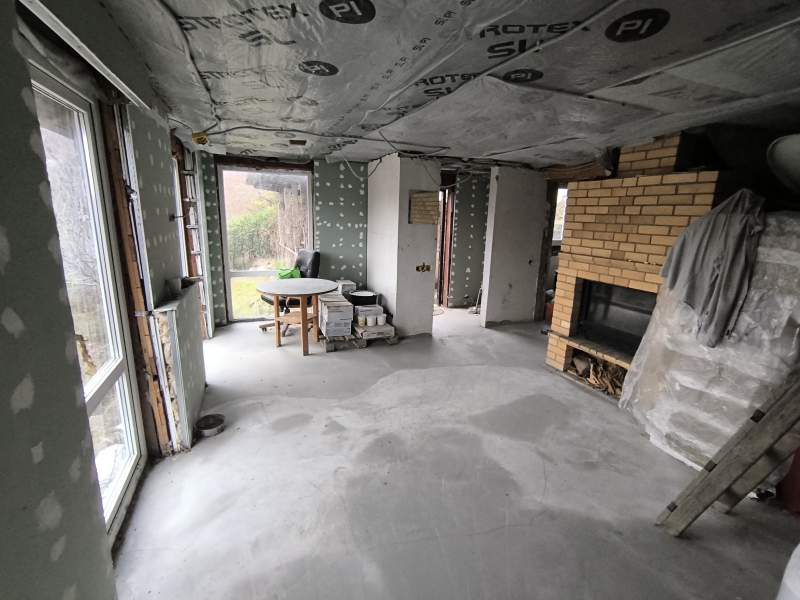Внутри дома: Уже сделана разводка электрики, вас согреют четыре контура водяного теплого пола и французский камин Supra. Надежная металлическая дверь Torex, радиатор для дополнительного обогрева комнаты, стяжка пола. Витражные окна Veka с выходом из гостиной и зала на будущую террасу, где можно будет наслаждаться закатами. Стены из бруса с утеплителем, обшиты ГКЛ, санузел – кирпичный. Высота потолков – 2.3 метра. В наличии плитка для санузла, ламинат для комнаты и другие материалы для завершения ремонта. Есть металл для террасы. Подготовлено место для двух машиномест и залита бетонная площадка под будущую баню.
