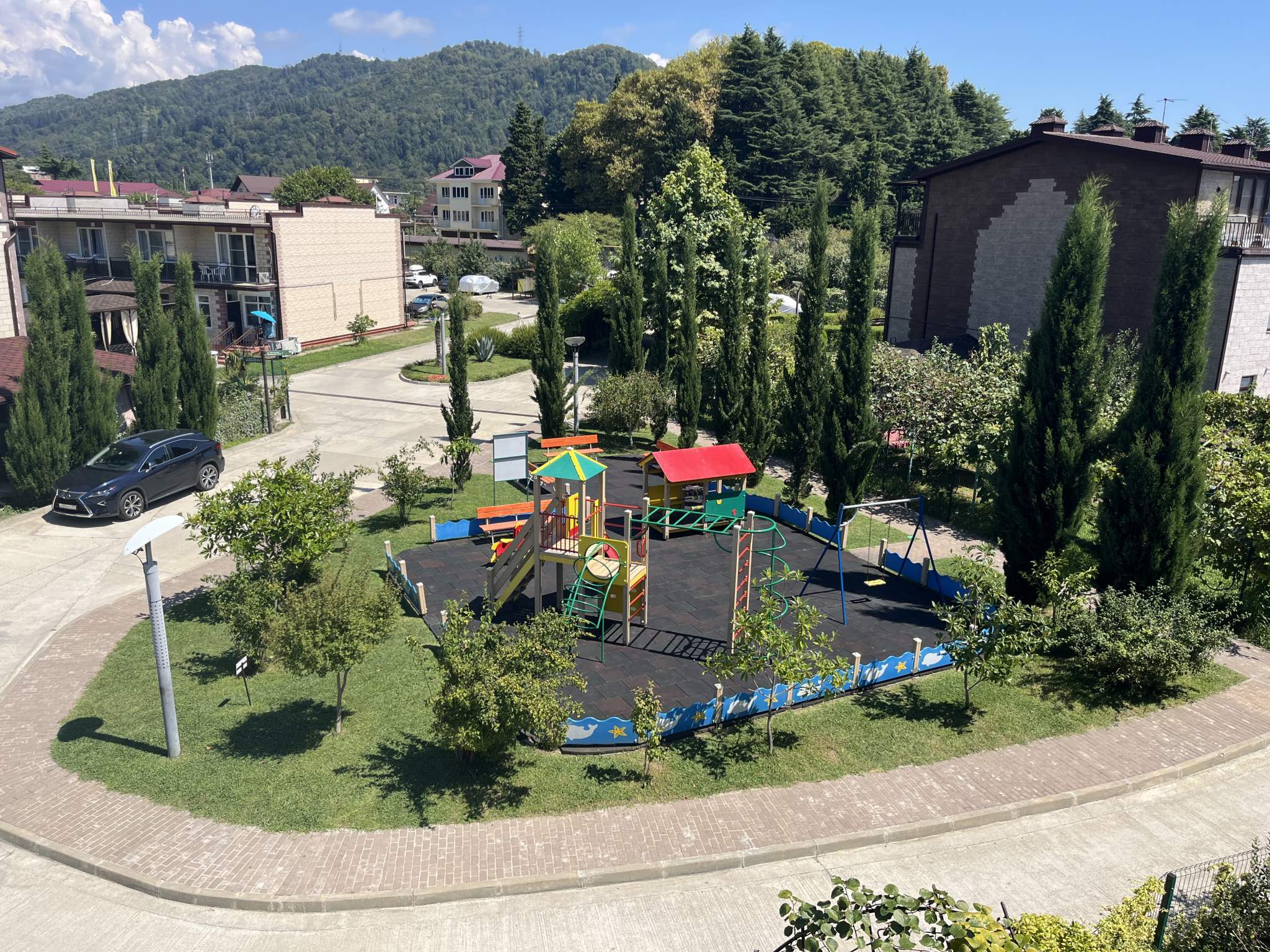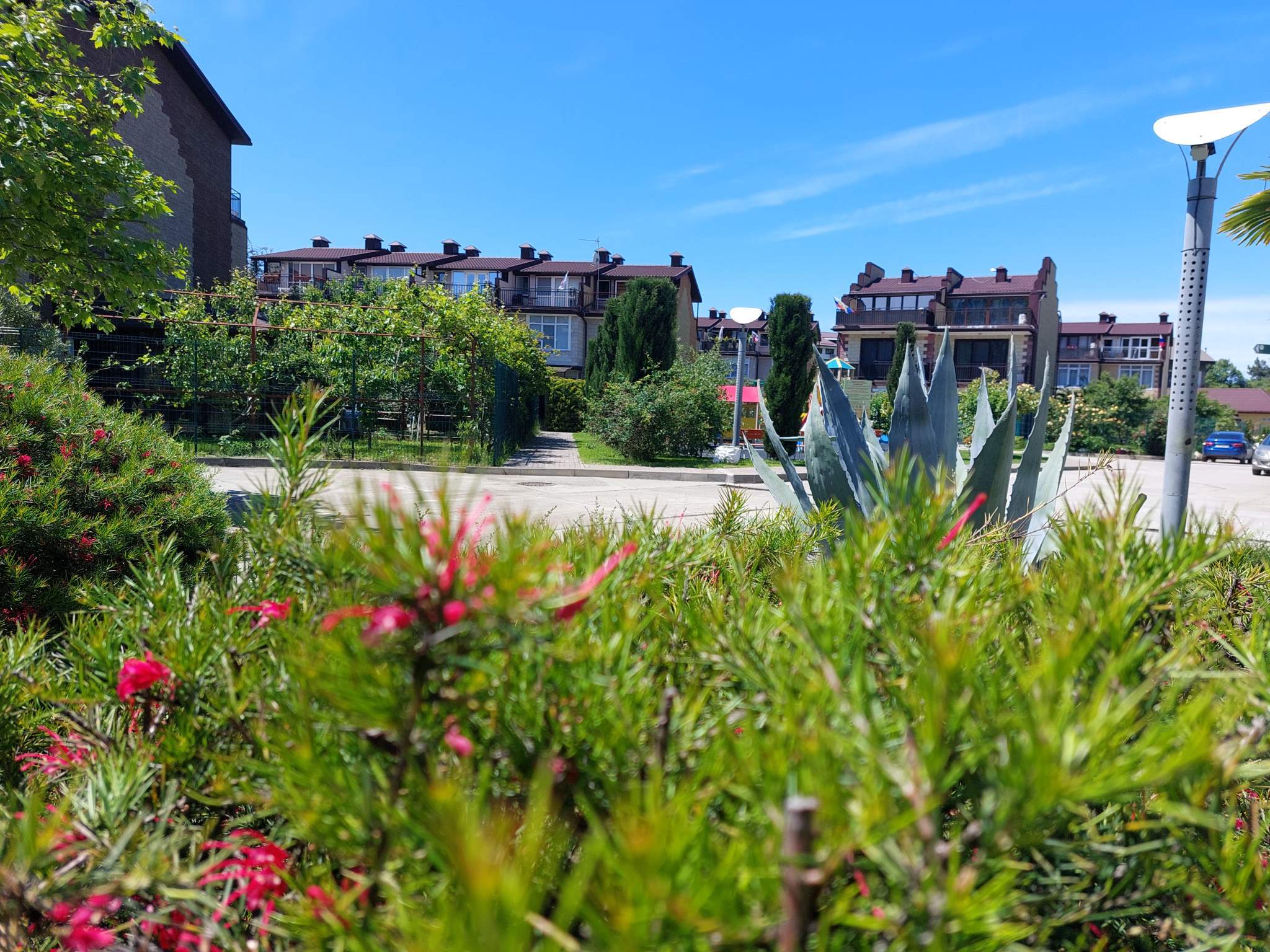 Вся инфраструктура в шаговой доступности - магазины и супермаркеты, отделение Сбербанка, аптеки, пункты выдачи Озон, Wildberries . Есть парковочное место!!! Ландшафтное озеленение, красивые видовые характеристики. Городская черта, сочинская прописка.